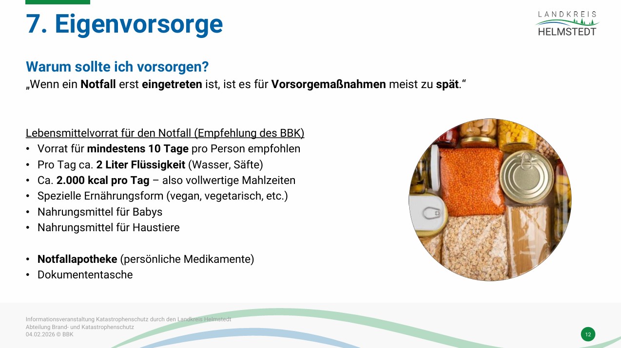 Gleichzeitig gingt es darum, was das für jede einzelne Person bedeutet: Wie kann ich mich selbst vorbereiten? Welche Vorräte und Vorkehrungen sind sinnvoll? Und wie schütze ich mich und meine Familie im Notfall.